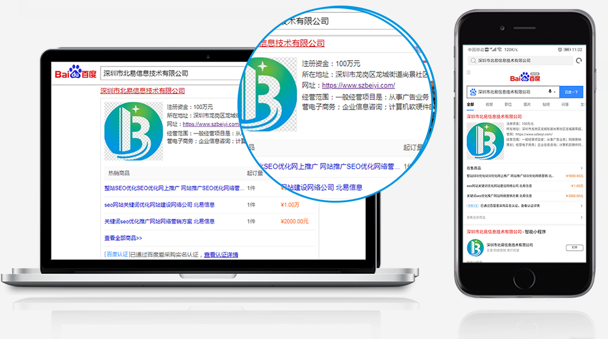 在百度搜索結(jié)果中,強(qiáng)樣式特型卡片展示,為商家打造品牌,提升知名度